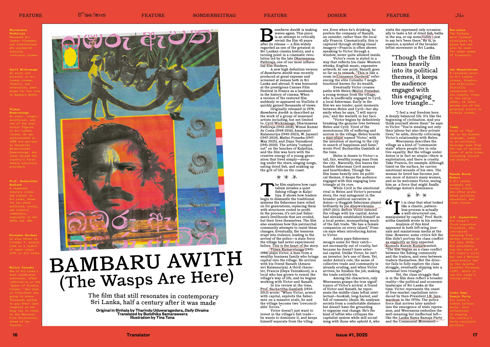 It’s Nice That has an interview with the magazines creative director Jeremy Leslie (of MagCulture fame) and a look through pages of the first issue. “Every element of each page, even the glossaries beside articles are well placed and fitting of each page’s design ecosystem. An example of this is the striking page on Sri Lankan film Bambaru Avith (The Wasps Are Here) where informative meets aesthetic, strengthening immersion by its breaking down of the Sinhala language. Design is utilised to inform, accommodating readership with translator notes to create a diversity of thought—not only outside of the English language but cultures outside our own personal spheres of thought.”